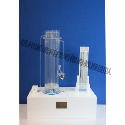 計算機型實驗桌,自循環供水系統,低噪環保型水泵,有機玻璃透明試驗筒、恒壓供水裝置、有滑尺與校準鏡面的可調式倒U型測壓計,精度±0.01,實驗專用人工砂;高教社出版的教材。